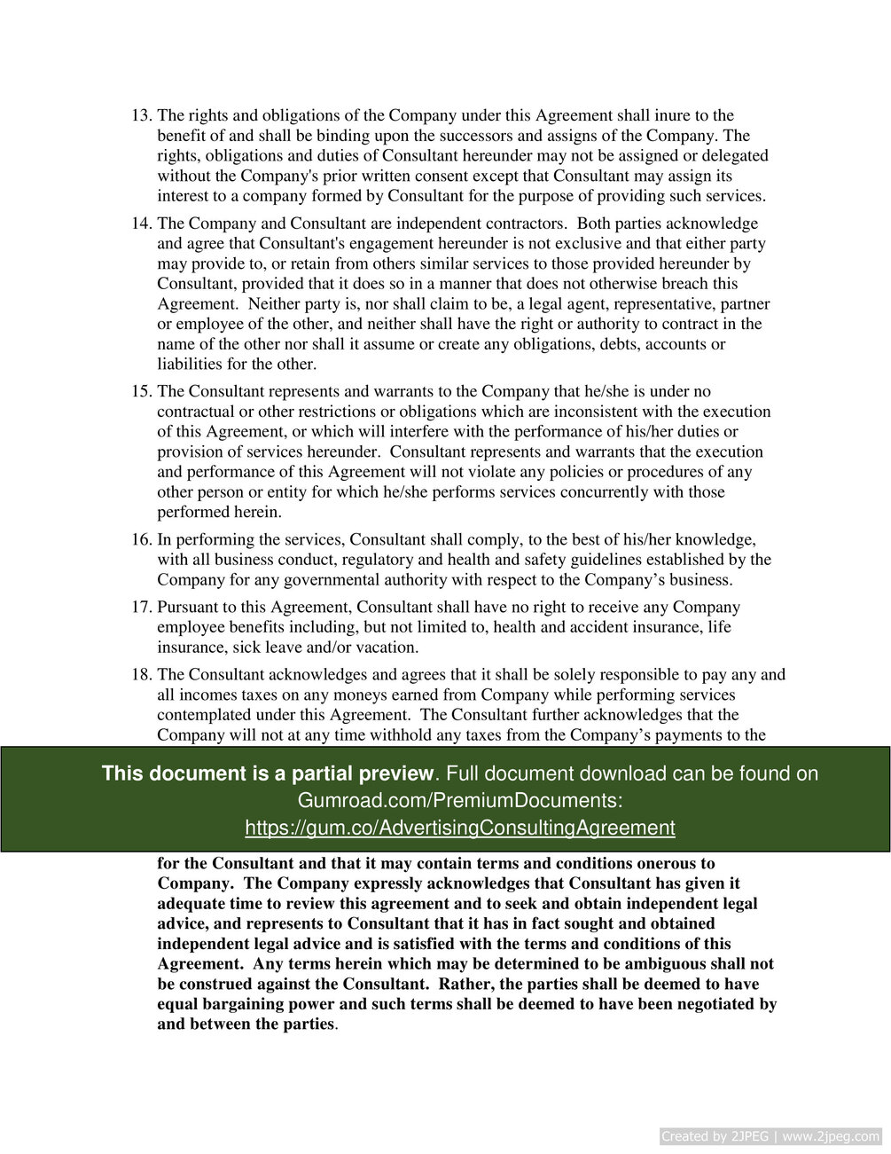 Advertising Consulting Agreement