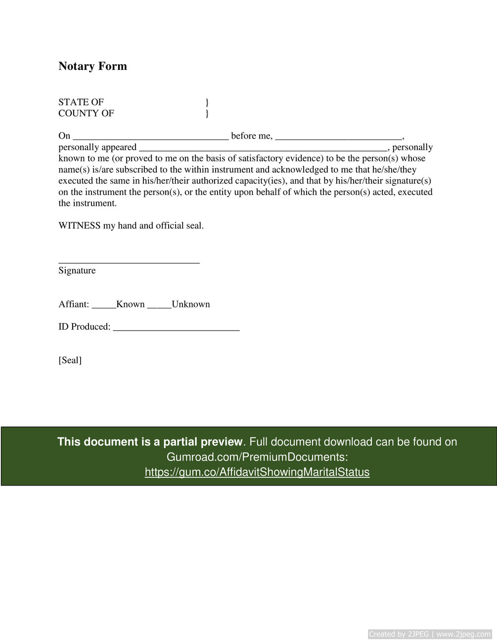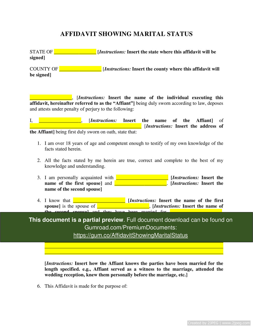 Affidavit Showing Marital Status