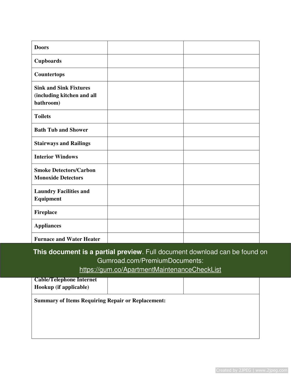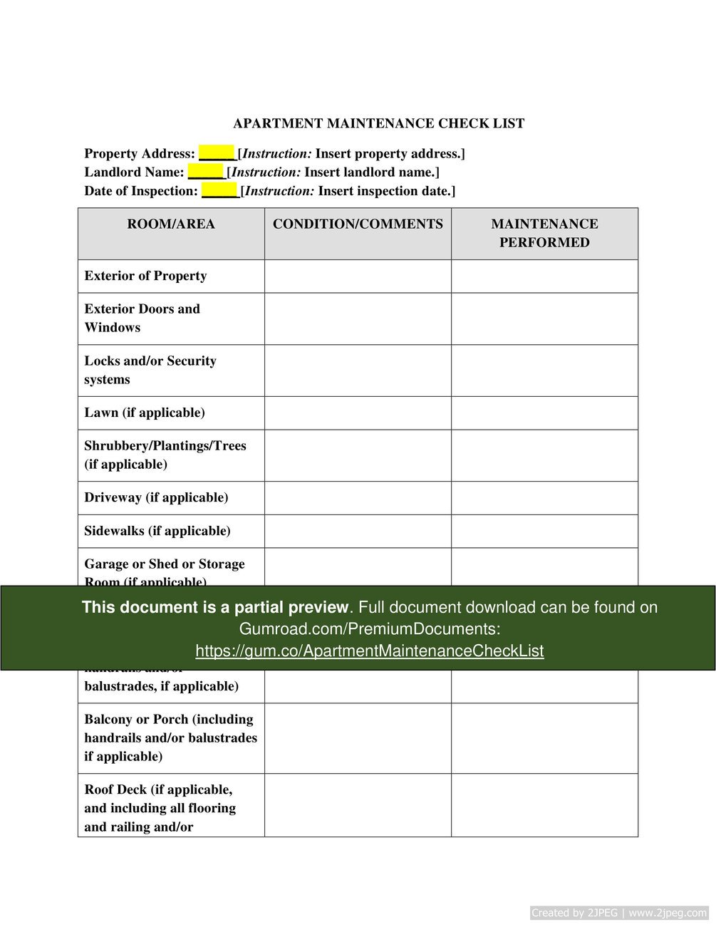 Download here: https://gum.co/ApartmentMaintenanceCheckList