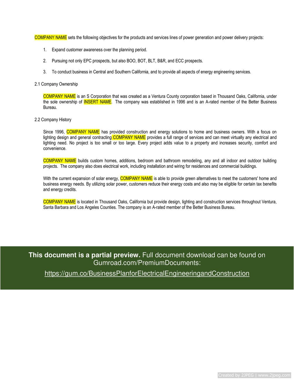 Download here: https://gum.co/BusinessPlanforElectricalEngineeringandConstruction