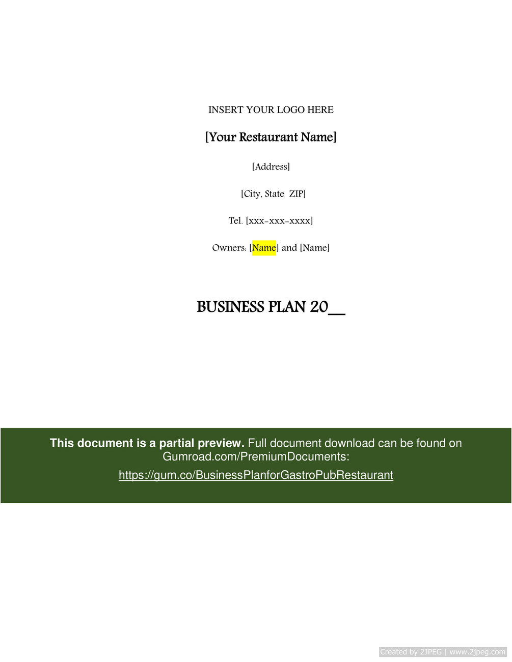 Download here: https://gum.co/BusinessPlanforGastroPubRestaurant