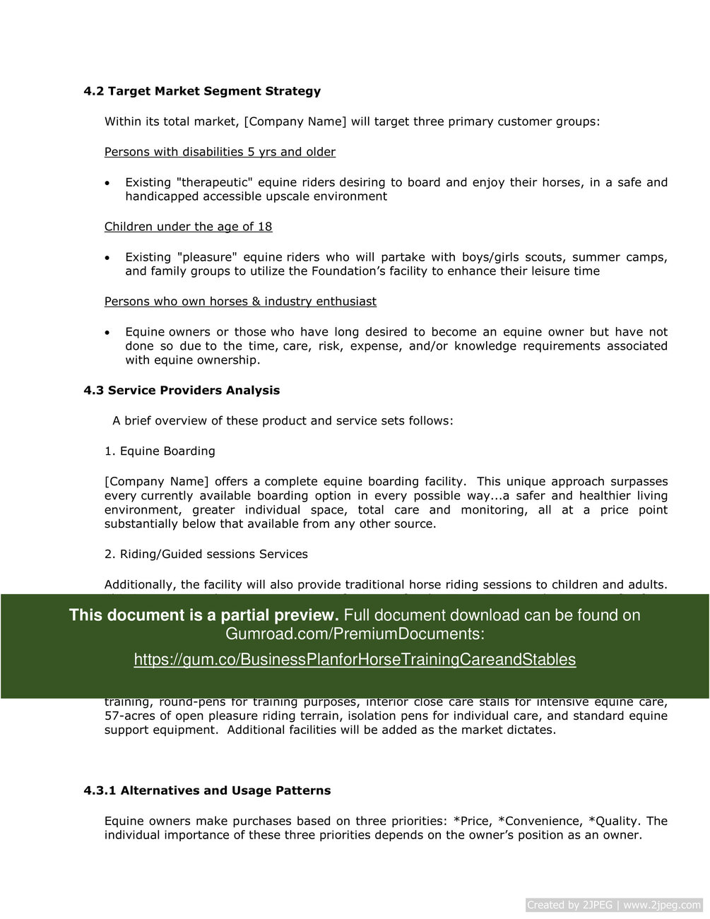 Download here: https://gum.co/BusinessPlanforHorseTrainingCareandStables