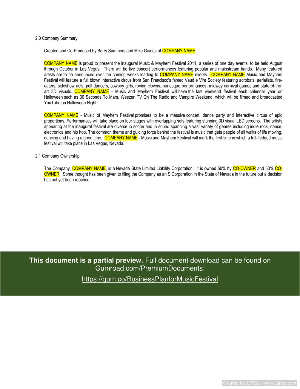 Download here: https://gum.co/BusinessPlanforMusicFestival