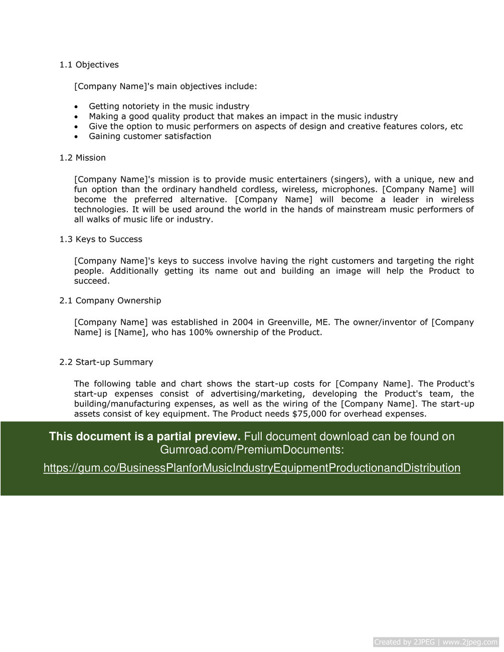Download here: https://gum.co/BusinessPlanforMusicIndustryEquipmentProductionandDistribution