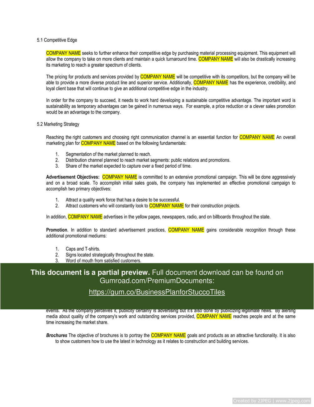 Download here: https://gum.co/BusinessPlanforStuccoTiles