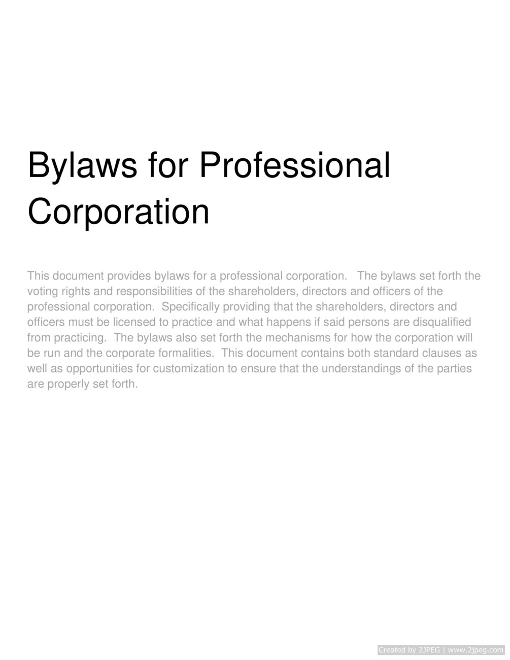 Download here: https://gum.co/BylawsforProfessionalCorporation