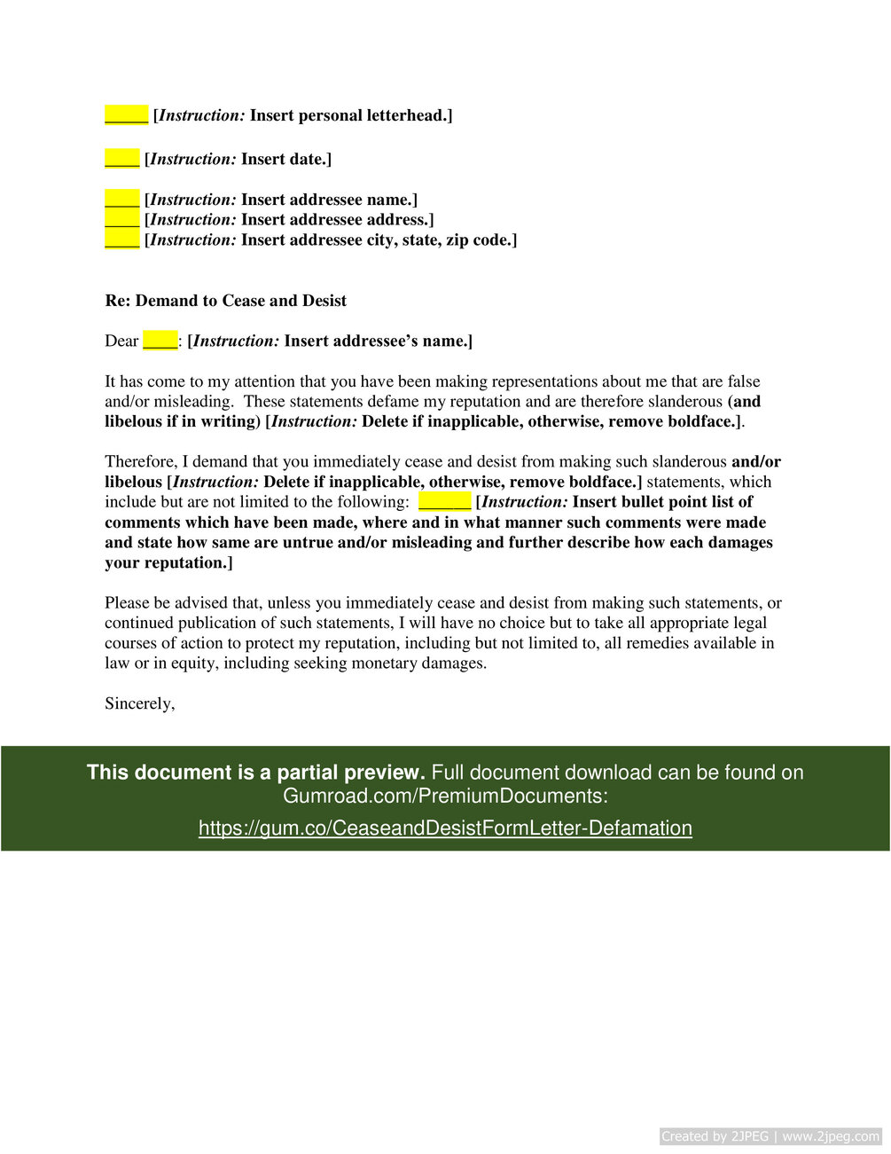 Download here: https://gum.co/CeaseandDesistFormLetter-Defamation