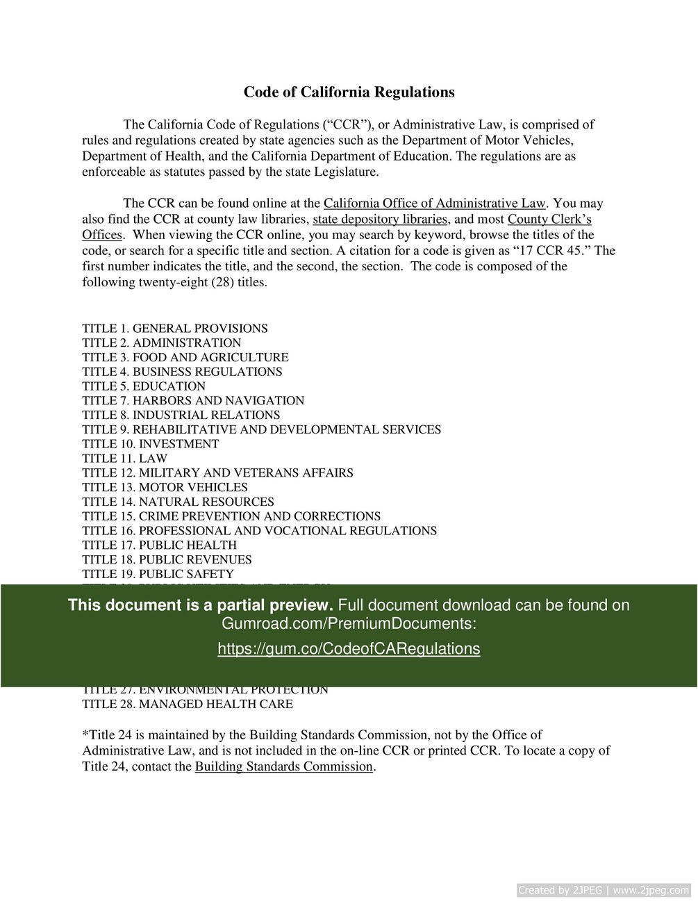 Download here: https://gum.co/CodeofCARegulations