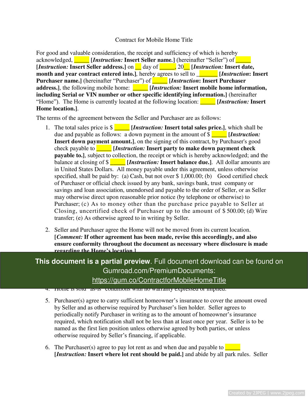 Download here: https://gum.co/ContractforMobileHomeTitle