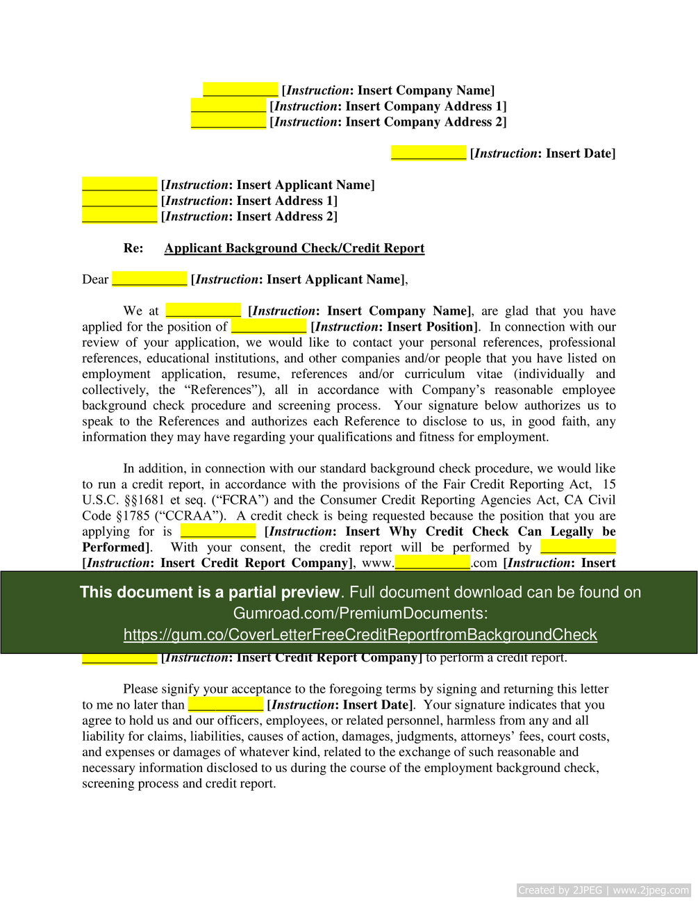 Download here: https://gum.co/CoverLetterFreeCreditReportfromBackgroundCheck