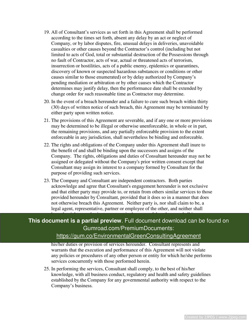 Environmental Green Consulting Agreement