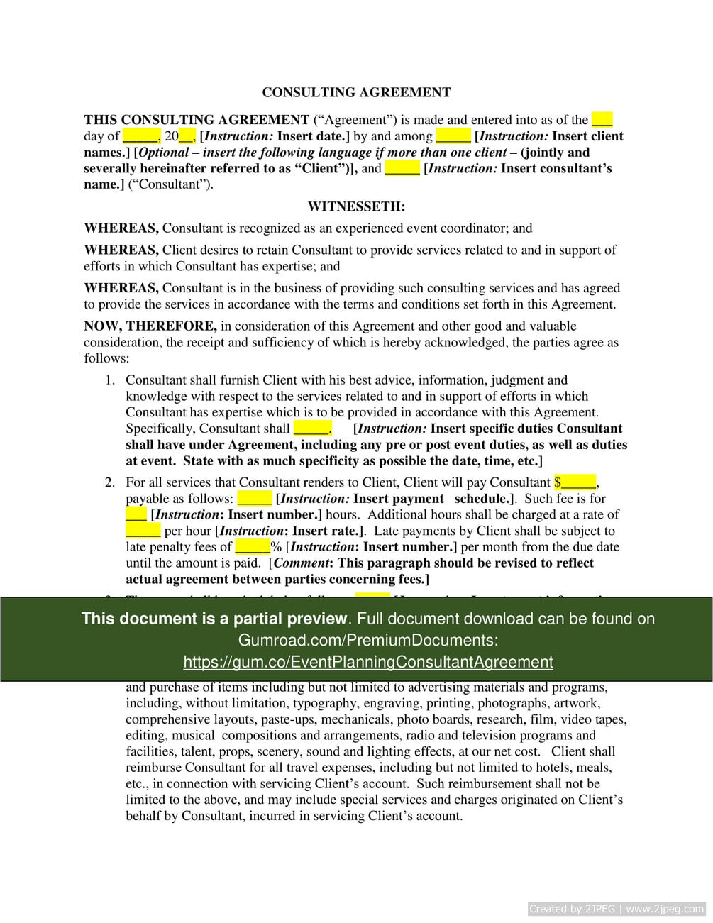 Event Planning Consultant Agreement