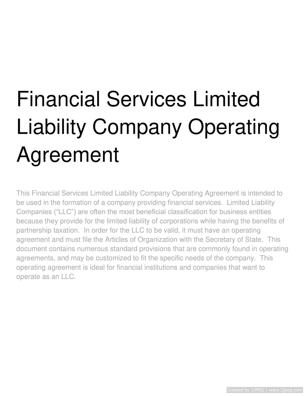 Financial Services Limited Liability Company Operating Agreement