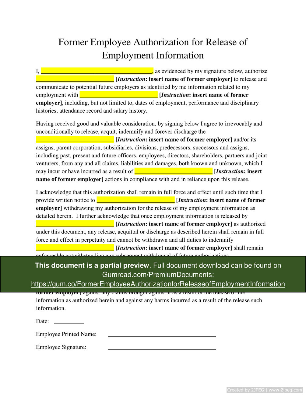 Former Employee Authorization for Release of Employment Information