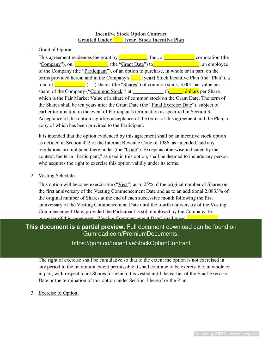 Download here: https://gum.co/IncentiveStockOptionContract