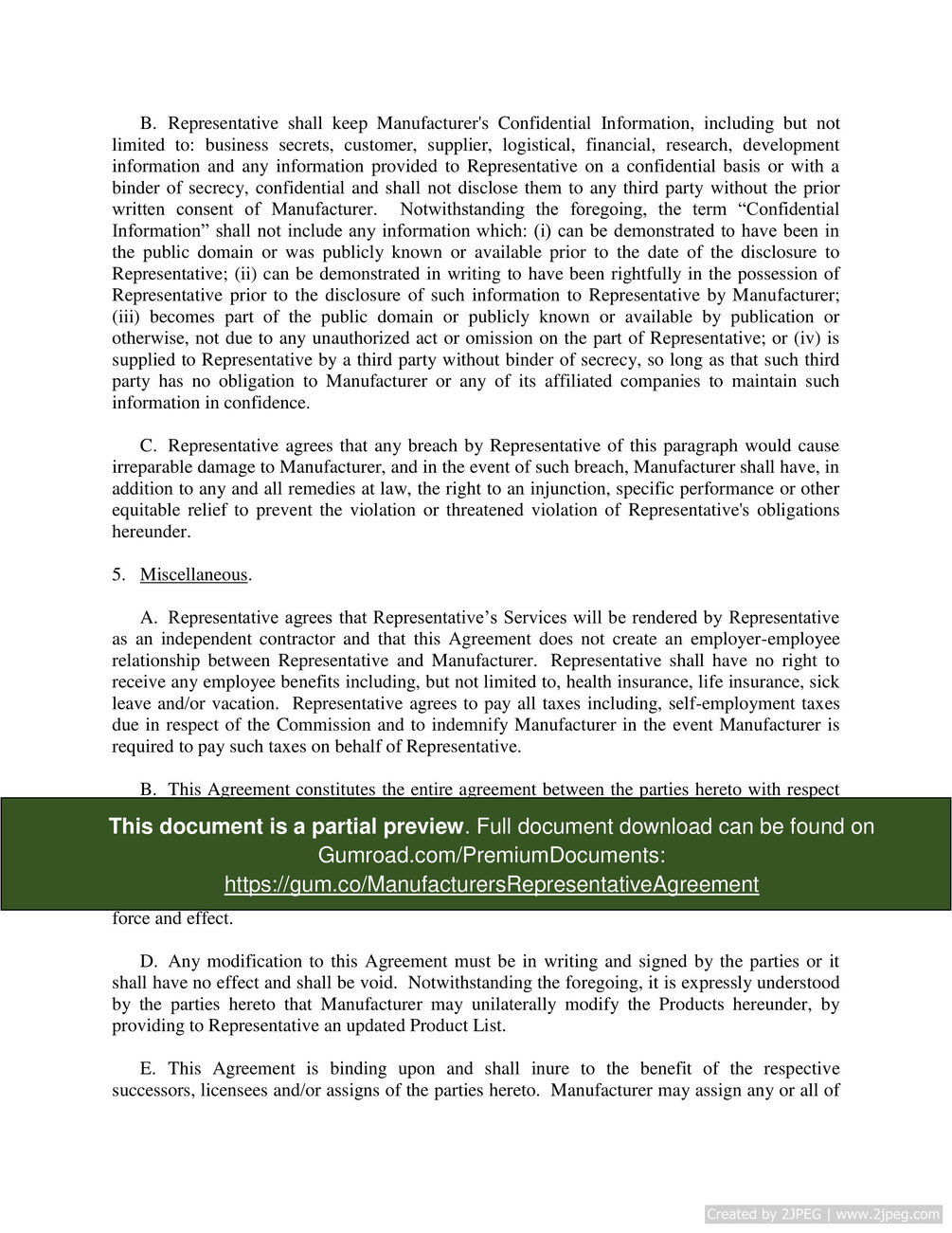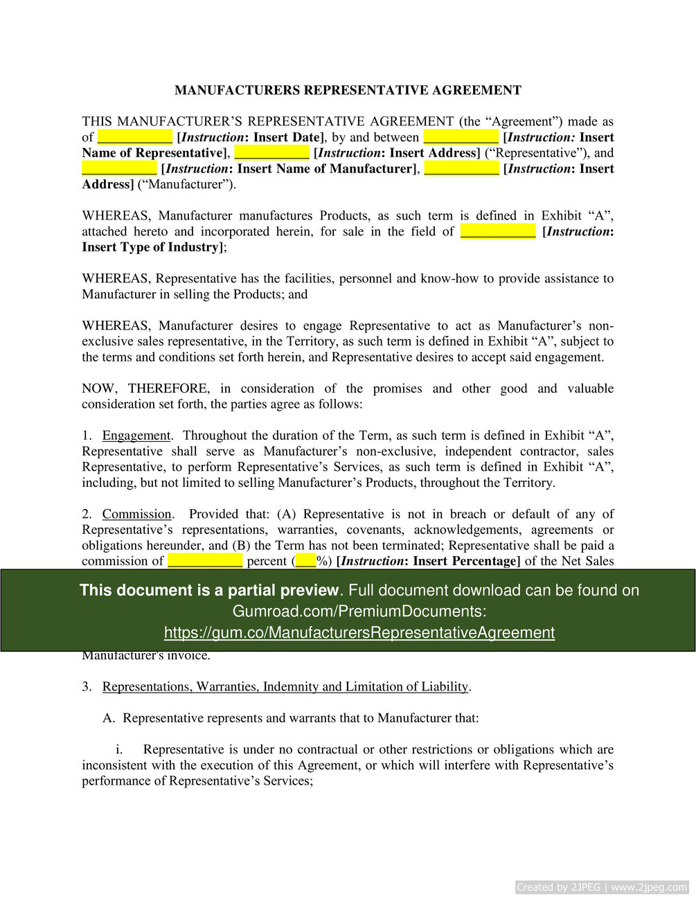 Download here: https://gum.co/ManufacturersRepresentativeAgreement