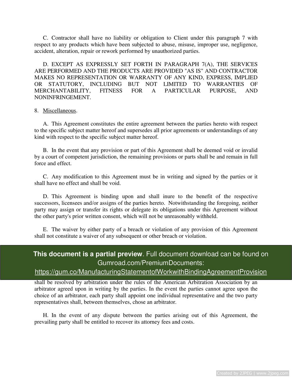 Manufacturing Statement of Work with Binding Agreement Provision