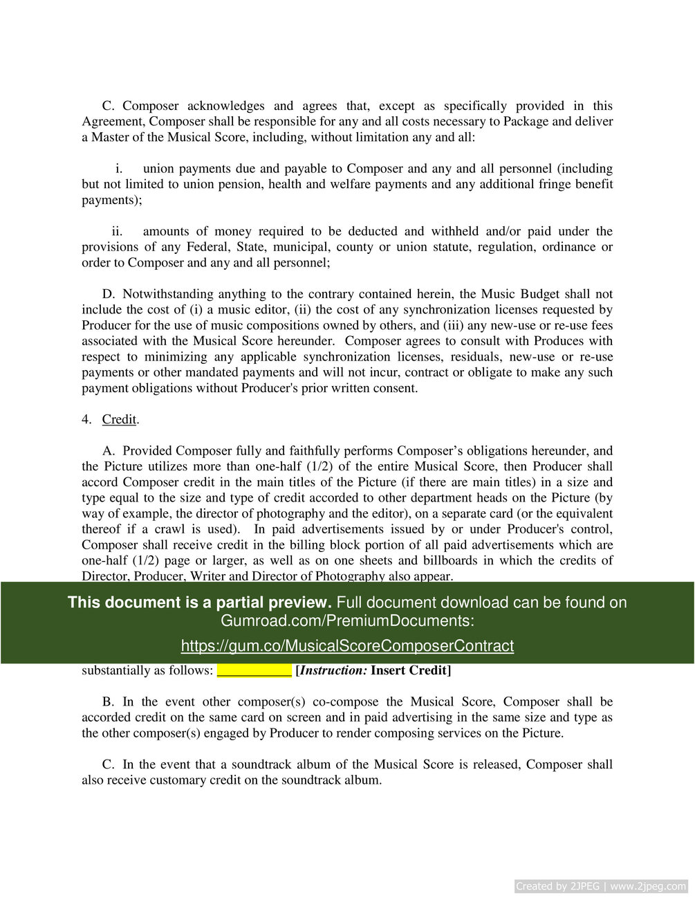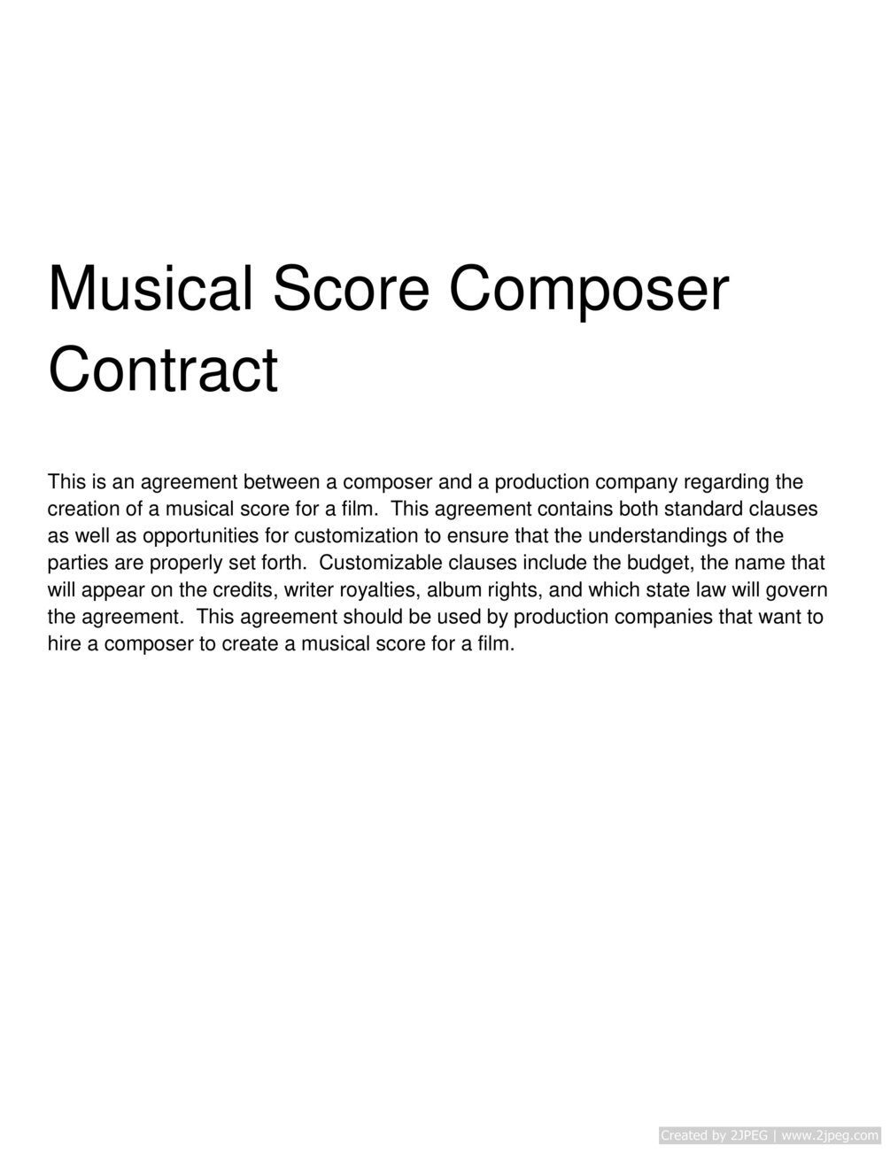 Musical Score Composer Contract