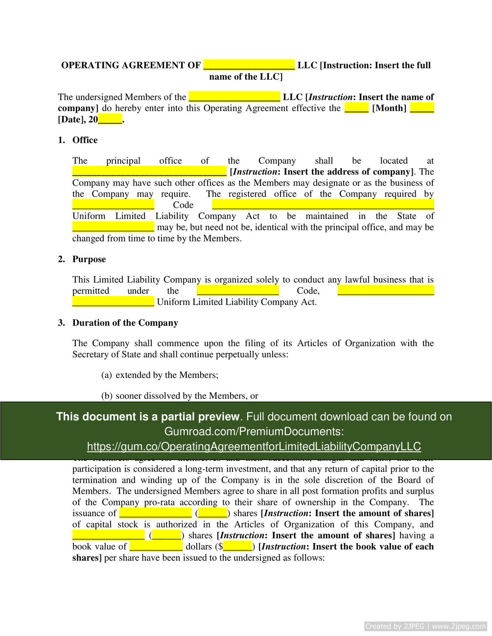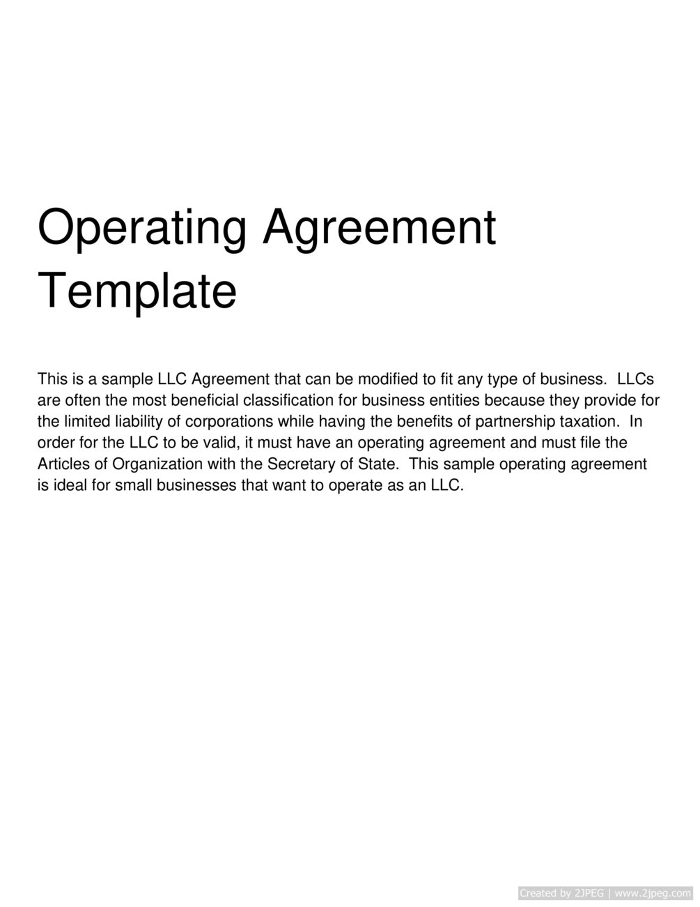 "This is a sample LLC Agreement that can be modified to fit any type of business. LLCs are often the most beneficial classification for business entities because they provide for the limited liability of corporations while having the benefits of partnership taxation. In order for the LLC to be valid, it must have an operating agreement and must file the Articles of Organization with the Secretary of State. This sample operating agreement is ideal for small businesses that want to operate as an LLC.