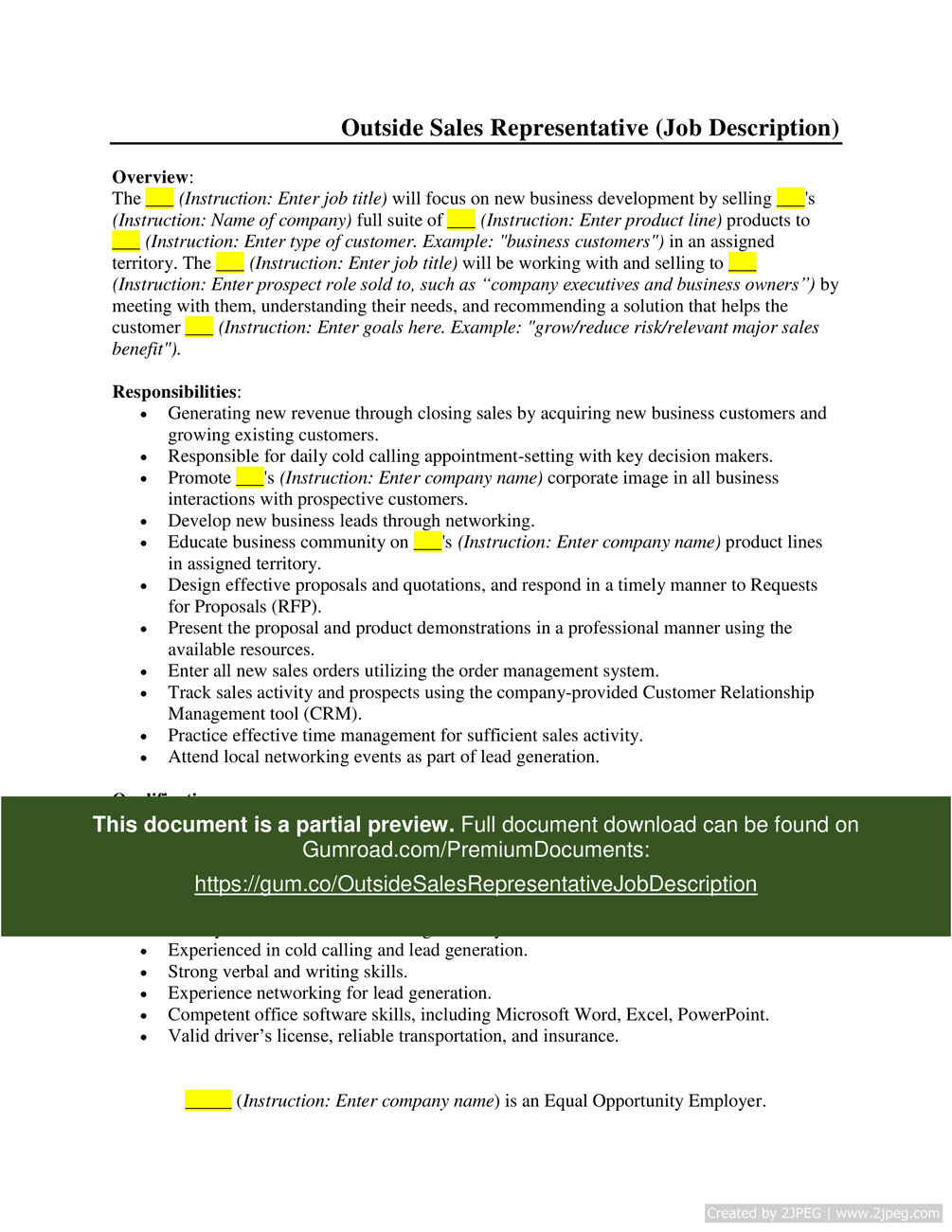 Download here: https://gum.co/OutsideSalesRepresentativeJobDescription