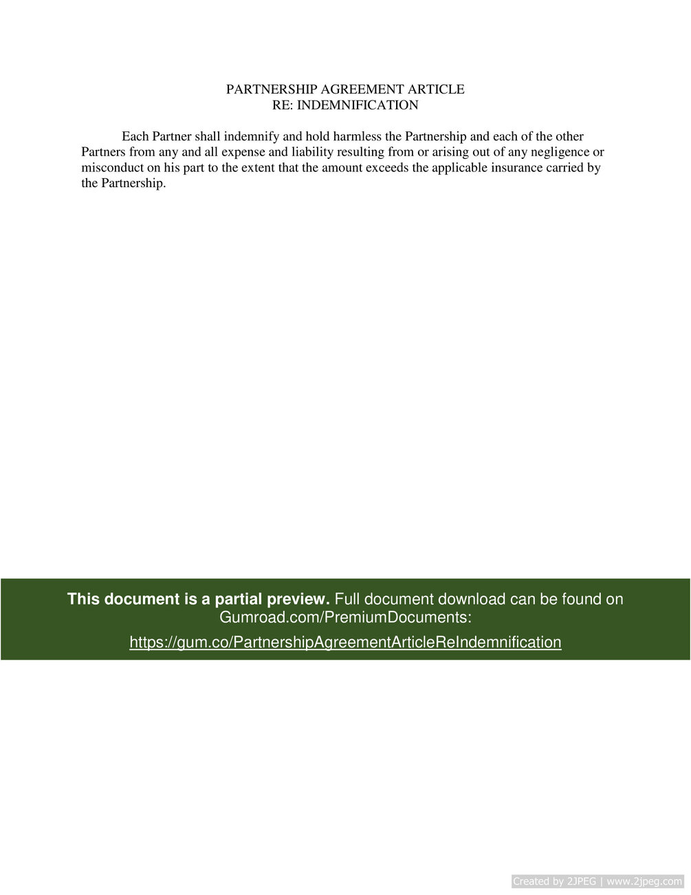 Download here: https://gum.co/PartnershipAgreementArticleReIndemnification