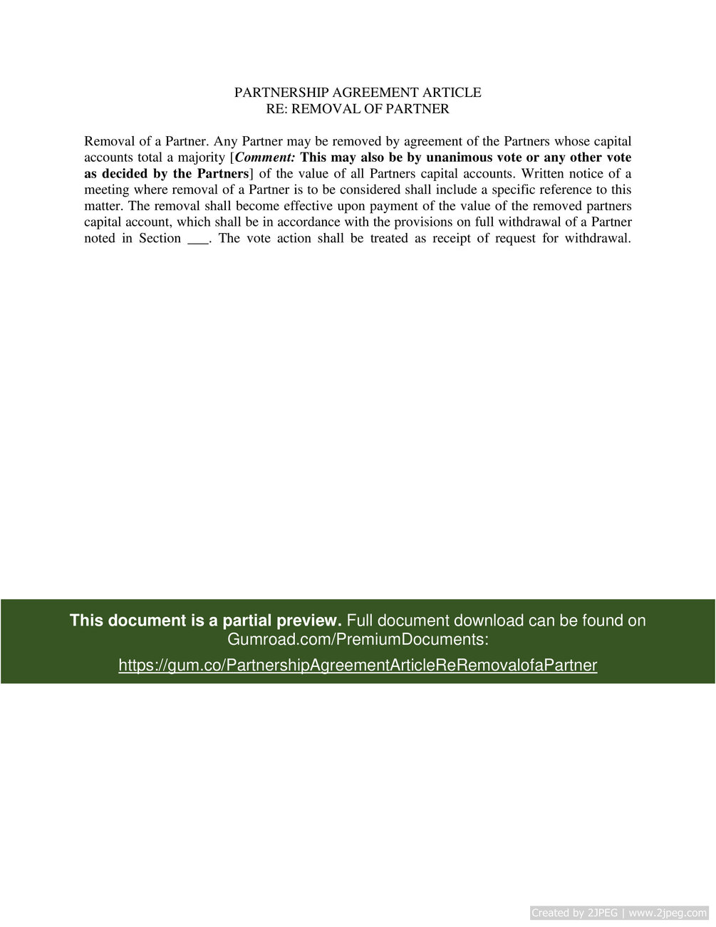 Download here: https://gum.co/PartnershipAgreementArticleReRemovalofaPartner