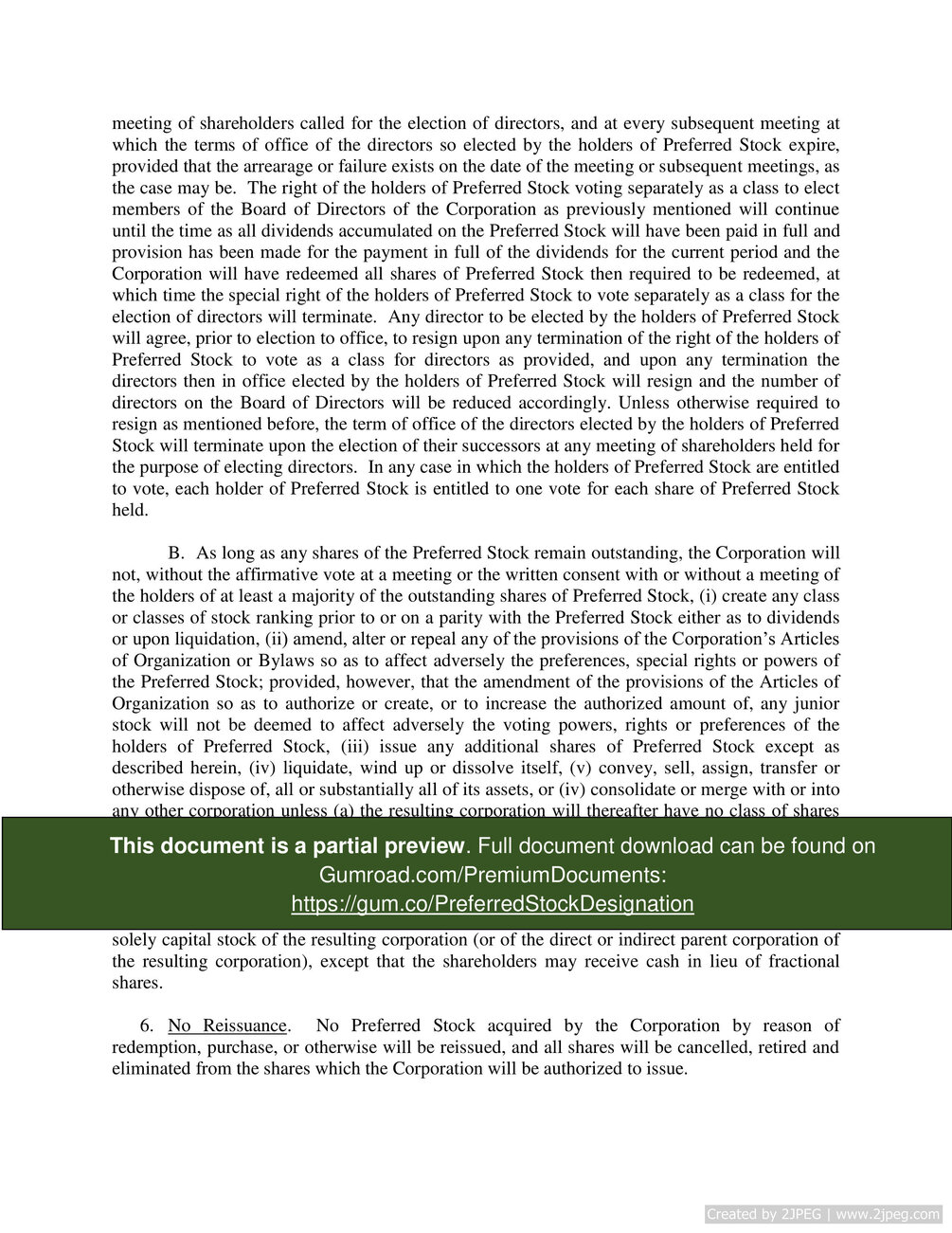 Preferred Stock Designation