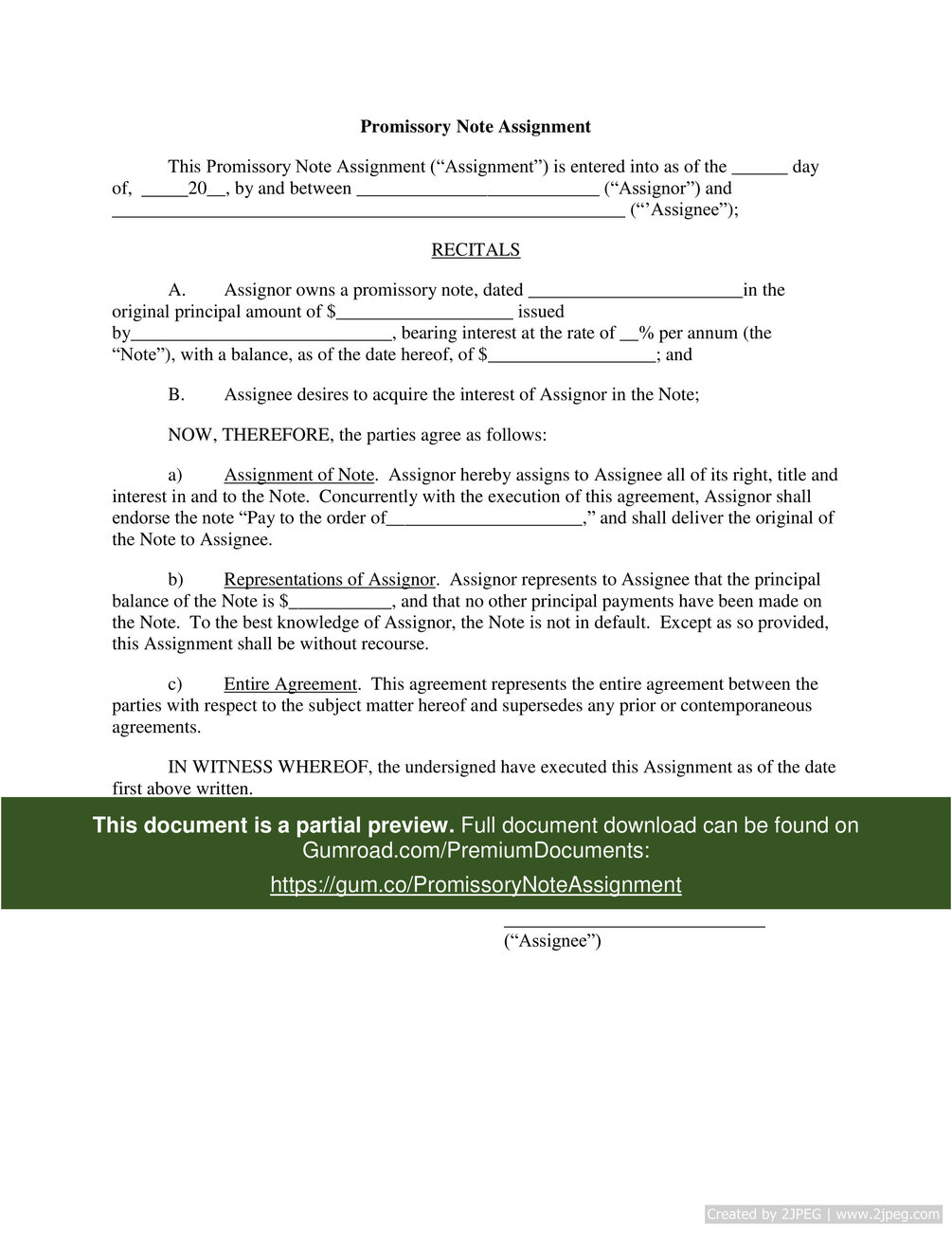 "This is an agreement whereby the holder of a promissory note transfers his or her right to receive payment on the loan to a third party. The agreement sets forth the original loan amount, the interest rate, and the balance of the note. The party transferring the note (the 'Assignor') promises that it holds a valid and binding note for the amount indicated. This document should be used by individuals or entities that want to transfer their right to receive payments under a promissory note to a third party.