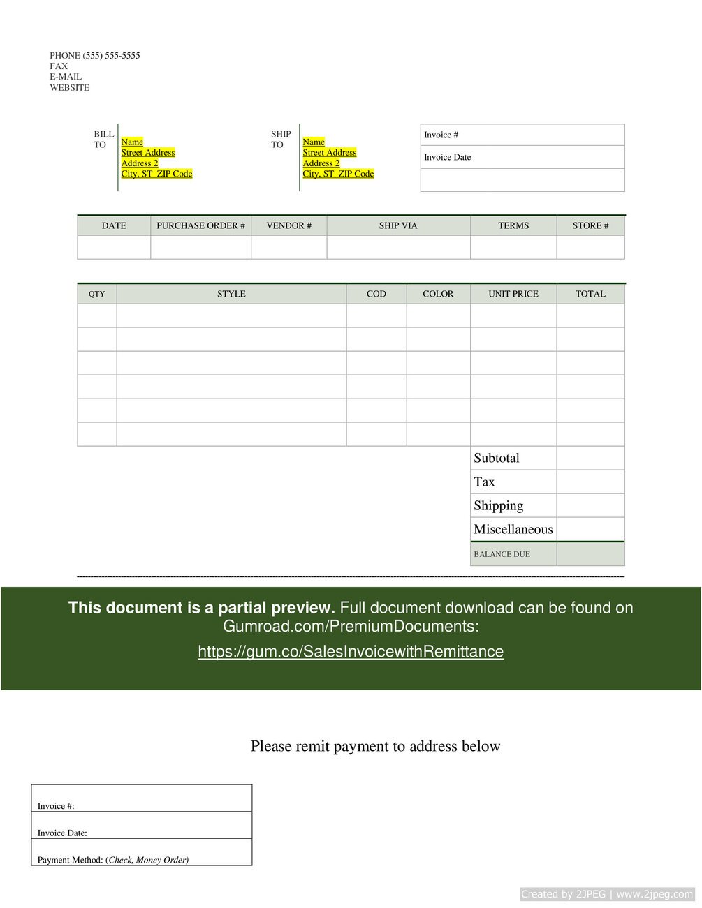 Download here: https://gum.co/SalesInvoicewithRemittance