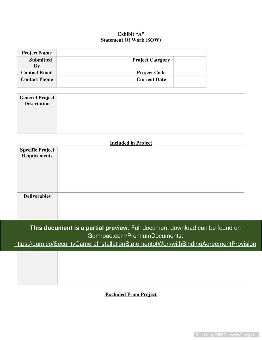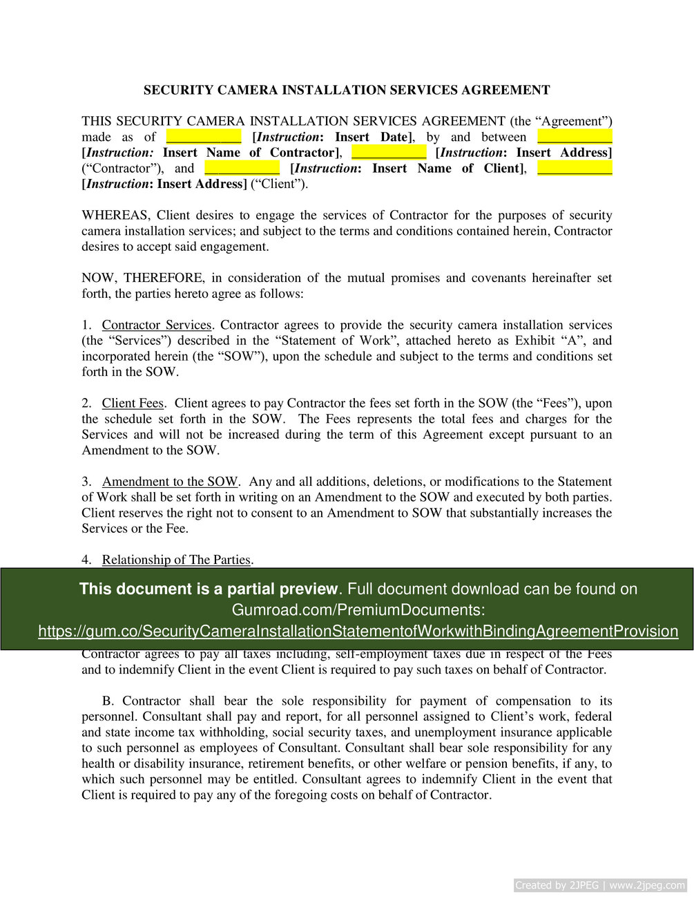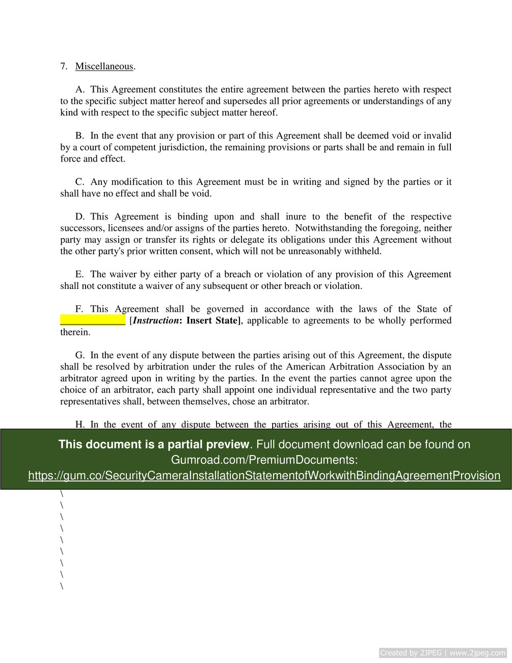 Security Camera Installation Statement of Work with Binding Agreement Provision