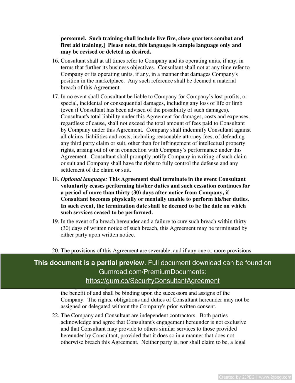 Security Consultant Agreement