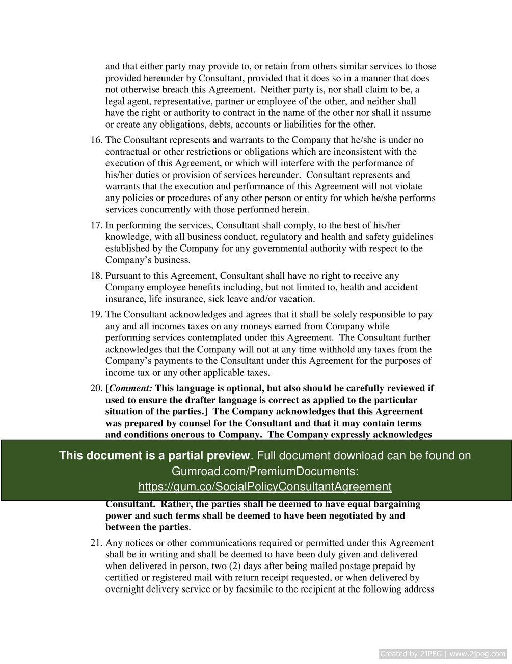Social Policy Consultant Agreement