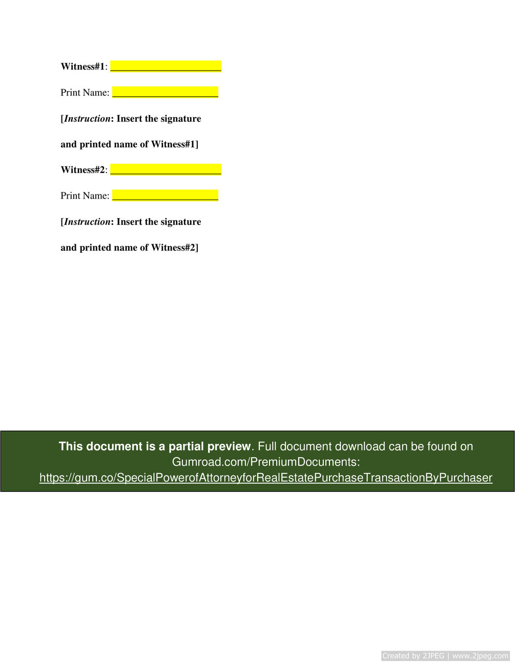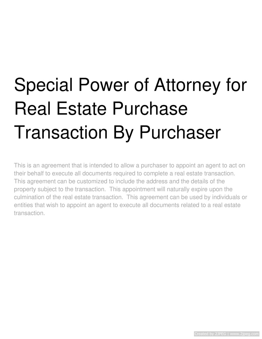 Special Power of Attorney for Real Estate Purchase Transaction By Purchaser