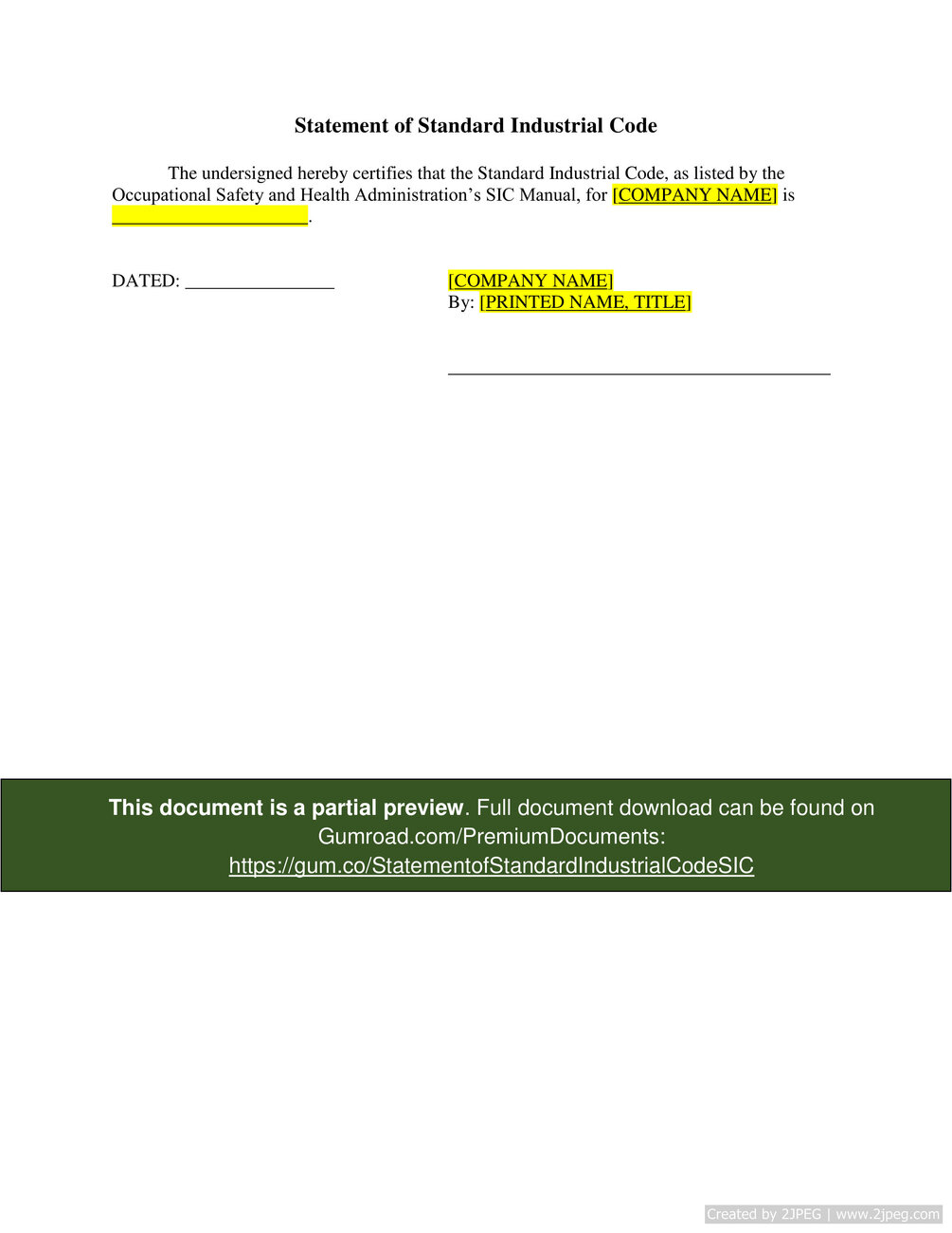 Download here: https://gum.co/StatementofStandardIndustrialCodeSIC